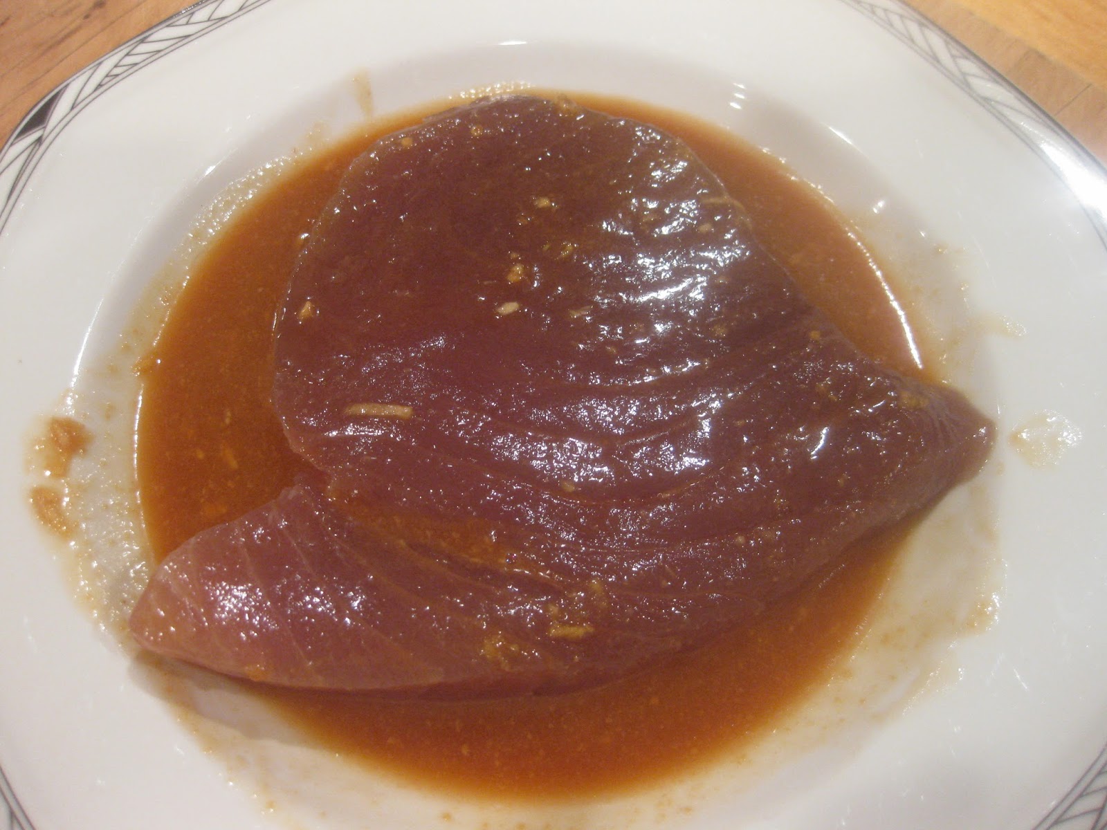 I had a half pound Ahi tuna steak to feed two people...and lots of fresh, crispy vegetables to use. There was some Asian vinaigrette (see the post Mango and Tamarind Glazed Pork Tenderloin with Asian Slaw for the recipe) in the fridge that needed to be used up.